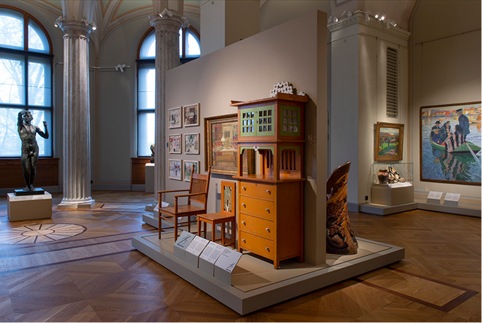 スウェーデン国立美術館は、1792年に同国の首都ストックホルムに開館した、ヨーロッパで最も歴史のある美術館の一つです。スウェーデン王室のコレクションにルーツを持つ同館の収蔵品は、1500年から1900年までの絵画、彫刻、素描、版画、そして中世初期から現代にいたる工芸、デザイン、肖像画を含みます。現在、美術館が入る建物は1866年に竣工し、階段壁面のフレスコ装飾は本展出品作家であるスウェーデンの国民的画家カール・ラーションが手掛けました。