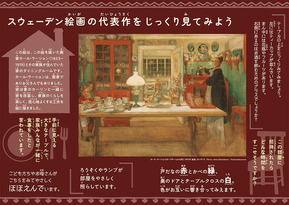 展覧会会場出口には、フォトスポットが登場。カール・ラーションの名画《カードゲームの支度》に描かれたダイニングルームを、スウェーデン発祥のイケアの家具を用いて再現しました。