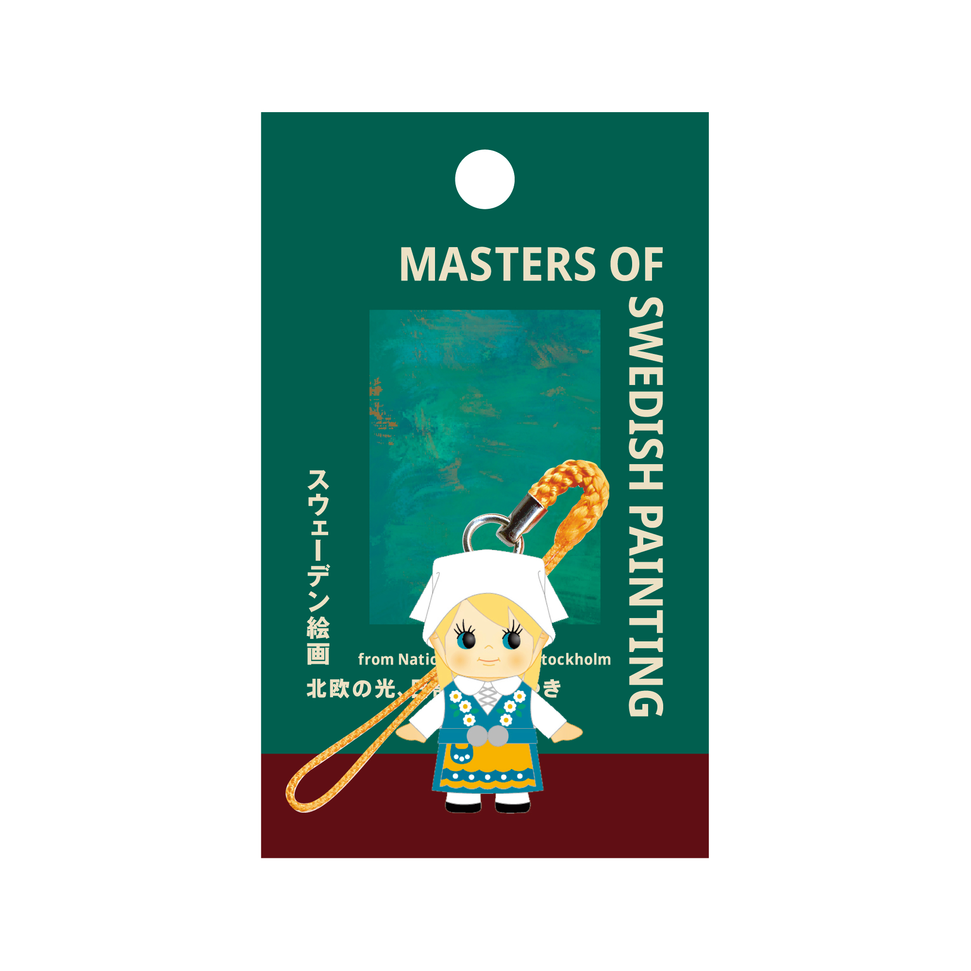 スウェーデンの公式民族衣装をまとった、オリジナルコスチュームキューピー付きチケットです。青いワンピースに黄色いエプロン、白い帽子が特徴。まさに100%スウェーデン!スウェーデンの魅力を詰め込んだ可愛らしい本展限定のキューピーです。